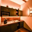 Il monolocale è composto da un ingresso privato che ti porta alla zona living suddivisa da cucina accessoriata con forno a microonde, un divano letto matrimoniale e un pouf. Nel completare la zona living troverete un bel tavolo spazioso di legno massiccio e sedie vellutate e TV. A finire l’appartamento c'è un bagno con doccia e un balcone spazioso.